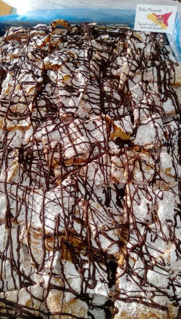 A very thin pastry shaped like a ribbon and deep fried. Once you sprinkle a generous layer of icing sugar, you won't be able to say no!